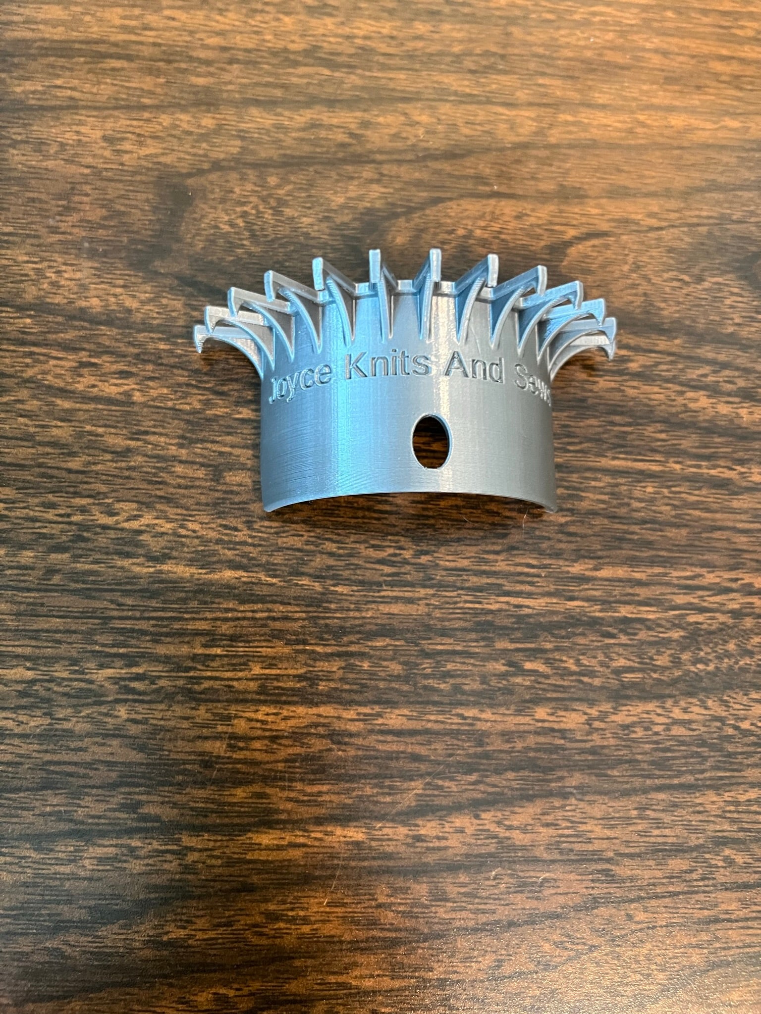 The Heel Hold Down takes the place of using heel weights when shaping your sock heel. No more stabbing yourself with those sharp heel forks or continually moving them up as you shape the heel and hoping you have them in the right place. Simply place the Heel Hold Down next to the area of the cylinder where you are shaping your heel. A gentle pressure is all that is necessary to keep the stitches from popping off the cylinder needles. Once you have completed the heel, add weights to help hold the stitches in place. The Heel Hold Down also works great for shaping the toe of your sock. It has been designed to fit inside a 4.75" cylinder.